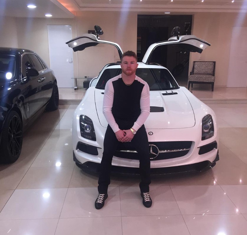 El boxeador posee un Mercedes-Benz SLS AMG en color blanco con valor de más de 230 mil euros.
