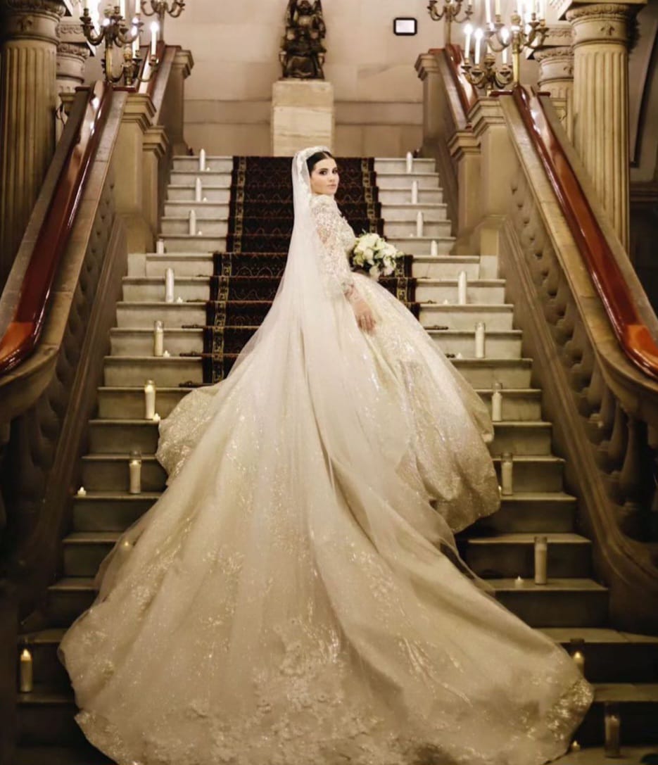 Cinthia Aparicio utilizó 3 vestidos distintos durante la celebración.