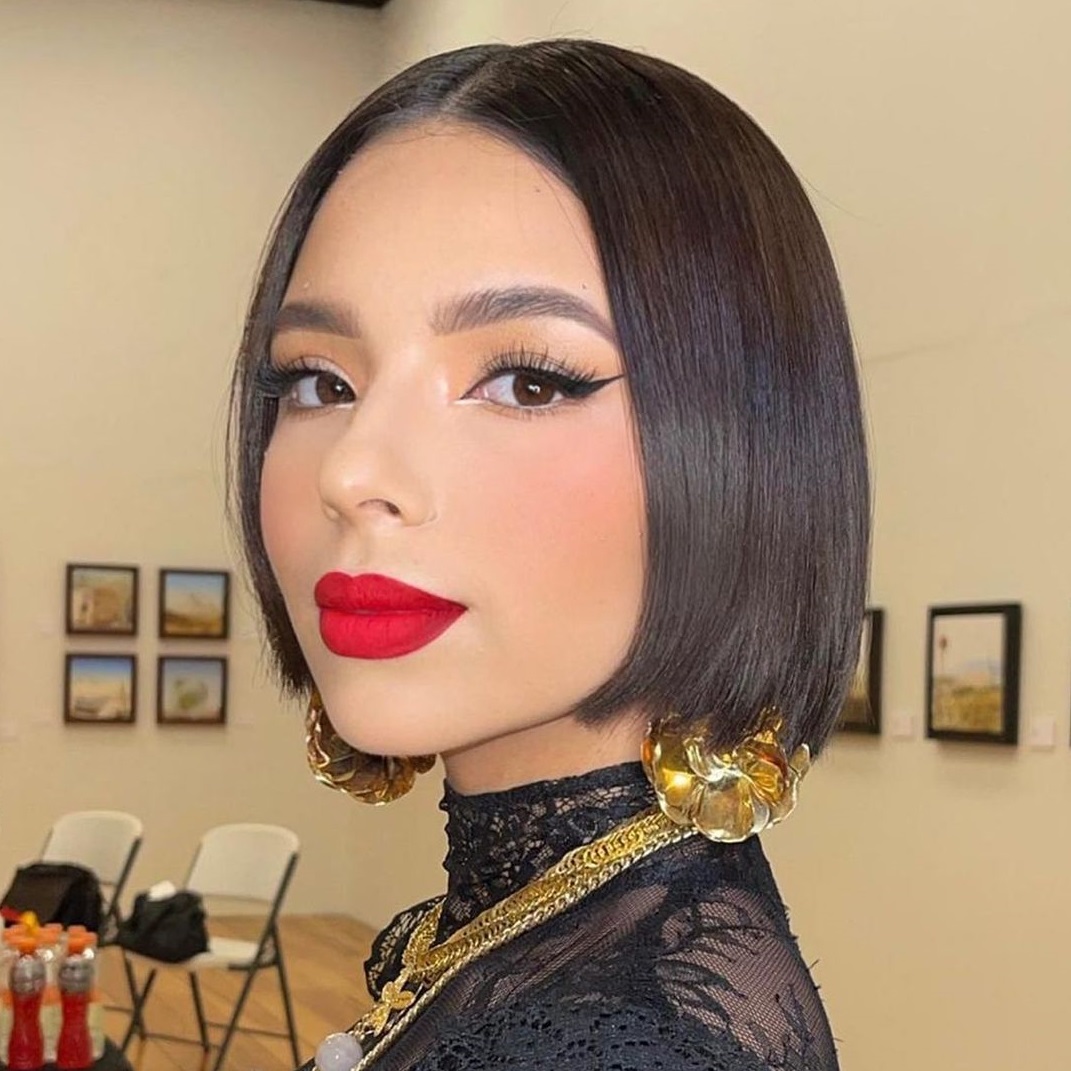 A lo largo de su carrera Ángela Aguilar se ha mostrado con la misma imagen que se caracteriza por su cabello negro con un corte estilo bob.