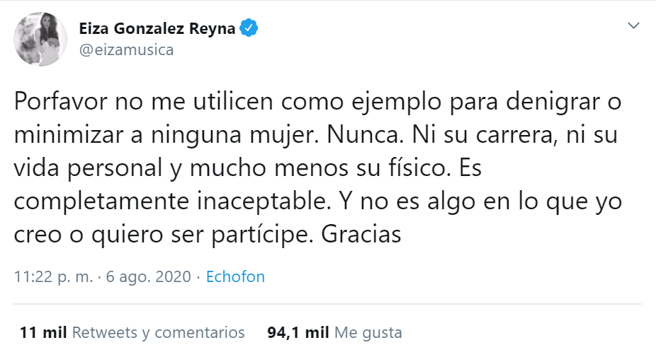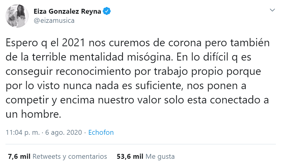 — Eiza Gonzalez Reyna (@eizamusica) August 7, 2020