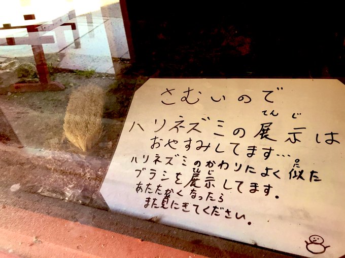 Un zoológico de Japón se hizo viral en redes sociales por colocar un cepillo, en la jaula donde debería estar un erizo.