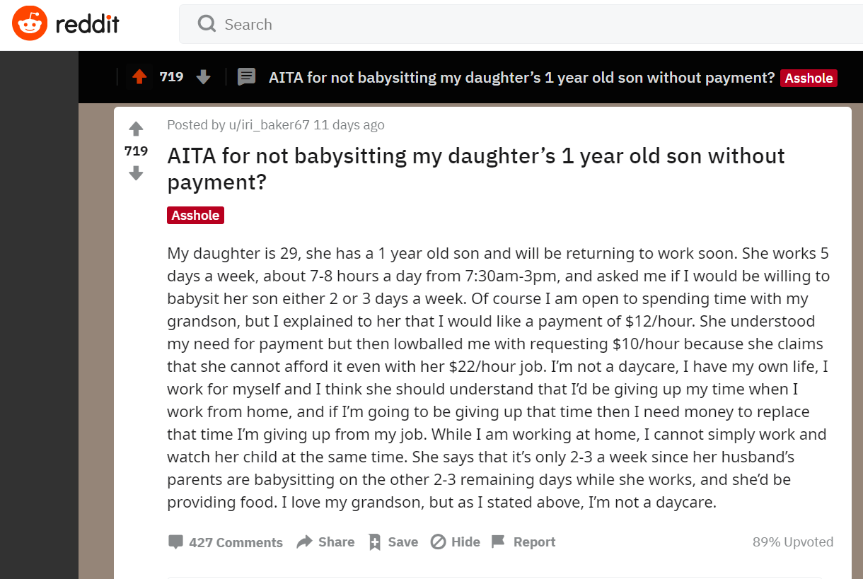 Tras preguntar en Reddit a los usuarios qué opinaban de su caso, muchos consideraron que era un abuso, pues estaba cobrando más de la mitad de lo que su hija gana trabajando.
