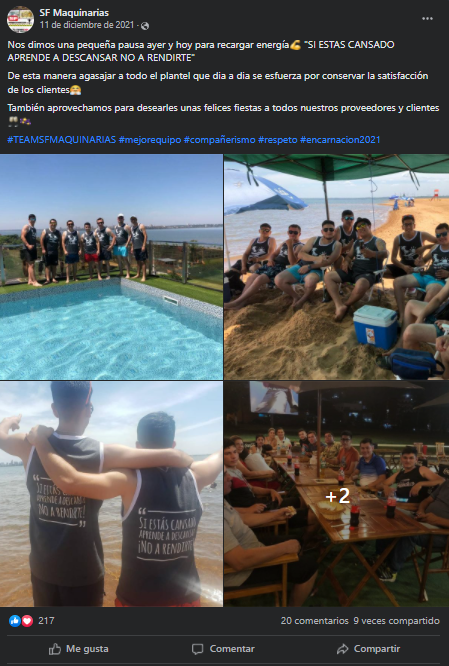 La historia de la compañía SF Maquinarias rápidamente se hizo viral, luego de que compartieran en su página oficial de Facebook una publicación con las fotografías de las vacaciones que tuvieron los empleados.