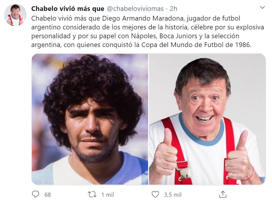 Incluso existe una cuenta llamada "Chabelo vivió más que" con 36 mil seguidores que se dedica a citar a los famosos que han muerto antes que el conductor.