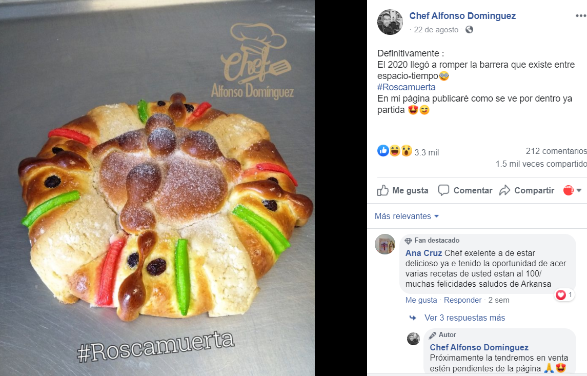 Ahora que los meses y las fechas festivas han perdido su significado debido a la pandemia de COVID-19, un chef mexicano decidió fusionar dos tradiciones y creó la 'Roscamuerta'.