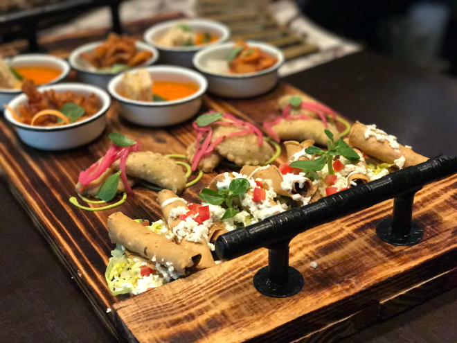 Como era de esperarse, ningún cóctel servido aquella tarde habría brillado como lo hizo de no ser por la compañía de los platillos típicos que se sirvieron en forma de canapé, como los taquitos dorados, el chicharrón de pulpo y las cazuelitas de caldo de jitomate.