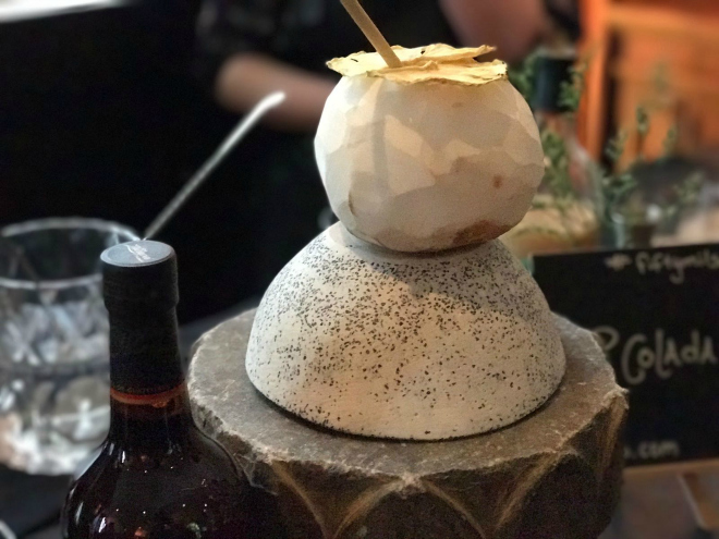 Visitar la barra de Fifty Mils aquella tarde fue casi como hacer un tour por los sabores y aromas de México, en especial con reinvenciones de cócteles tan clásicos como la Piña Colada, que los mixólogos mexicanos de este bar interpretaron como P.P. Colada, un trago curioso servido en la carne de un coco y hecho con jugo natural.