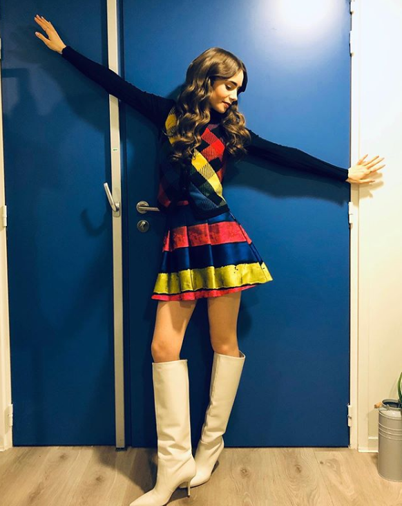 Lily Collins se inspiró en Rainbow Brite para su disfraz.
