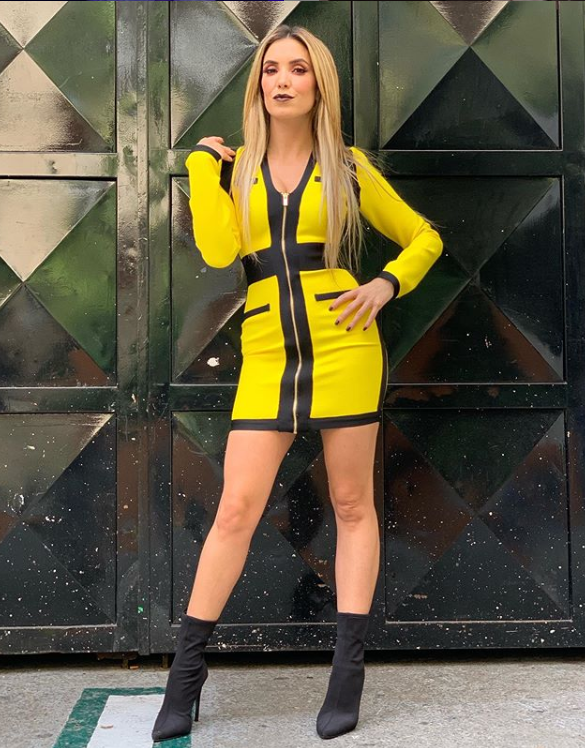 La conductora Andrea Escalona se disfrazó de Kill Bill, aunque aseguró que algunos la confundieron con integrante de la Banda Timbiriche.