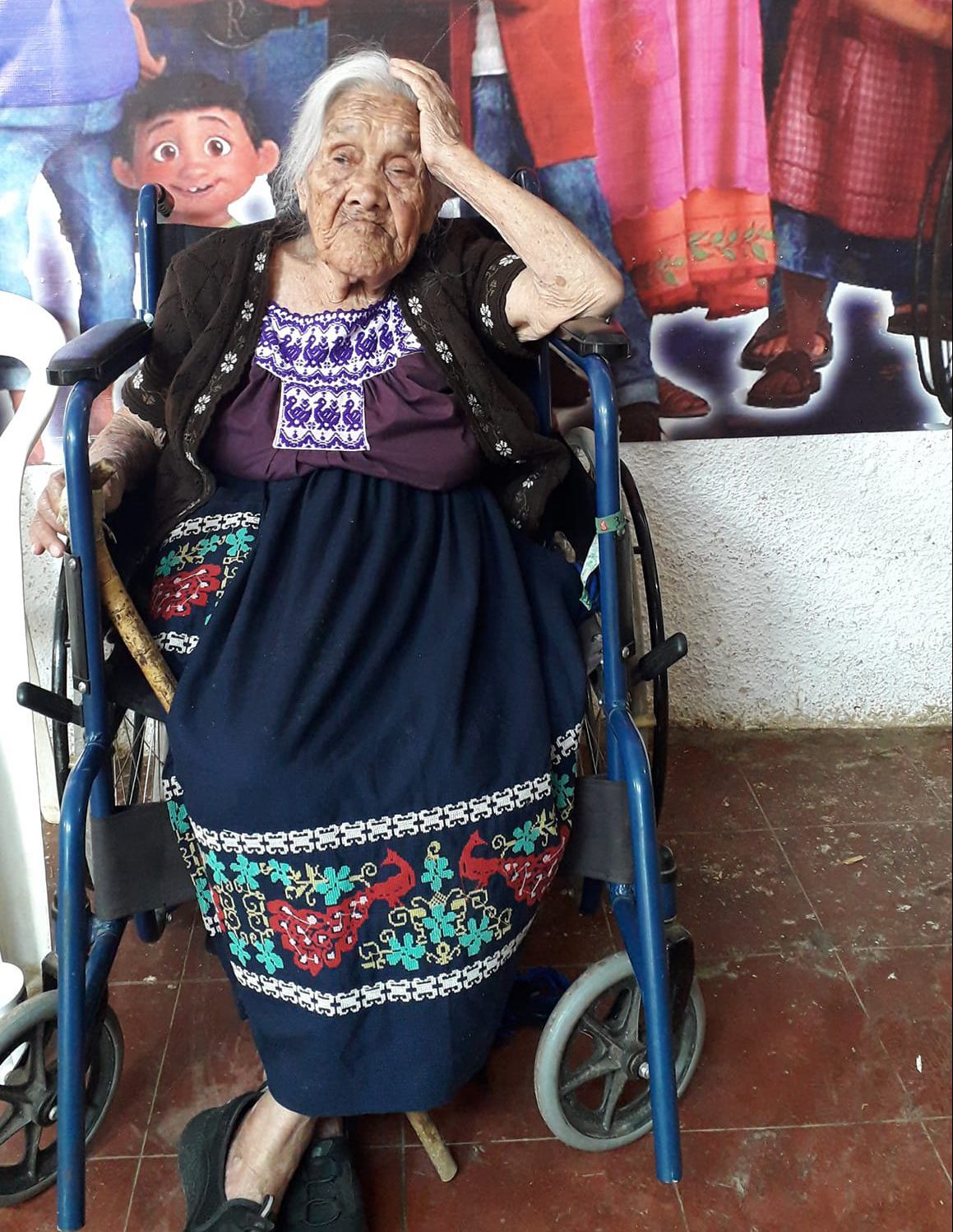 María Salud tiene 108 años y vive en Santa Fe de la Laguna, un pueblo purépecha cercano a Pátzcuaro, que también aparece en la película como el hogar de la familia Rivera.