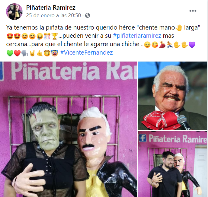 Fue a través de sus redes sociales donde la piñatería compartió fotografías de la figura de Vicente tocando a otras piñatas y personas.