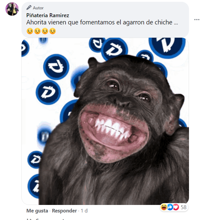 Su publicación dividió opiniones entre sus seguidores, a lo que la piñatería respondió: "Ahorita vienen que fomentamos el agarron de chiche", junto a un gif de un mono sonriendo.