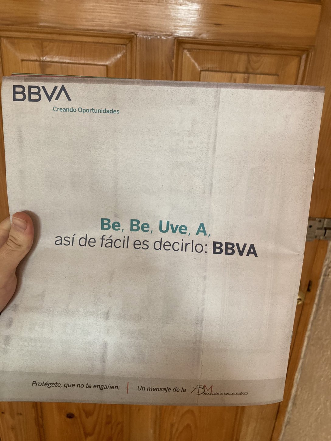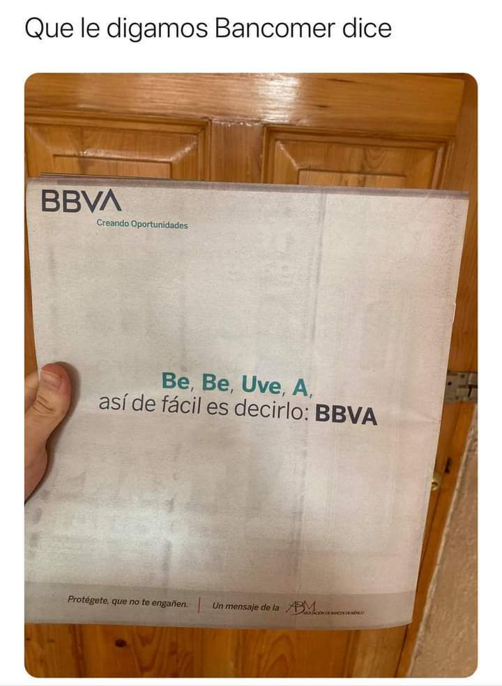 "Be, BE, Uve, A, así de fácil es decirlo: BBVA", se puede leer en una propaganda que les llegó a los clientes.