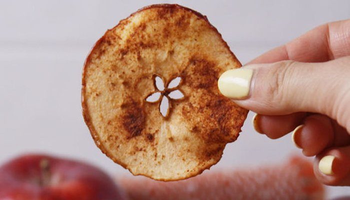 Una taza de chips de manzanas deshidratadas tiene en promedio 75 calorías y es un buen sustituto de las papas.