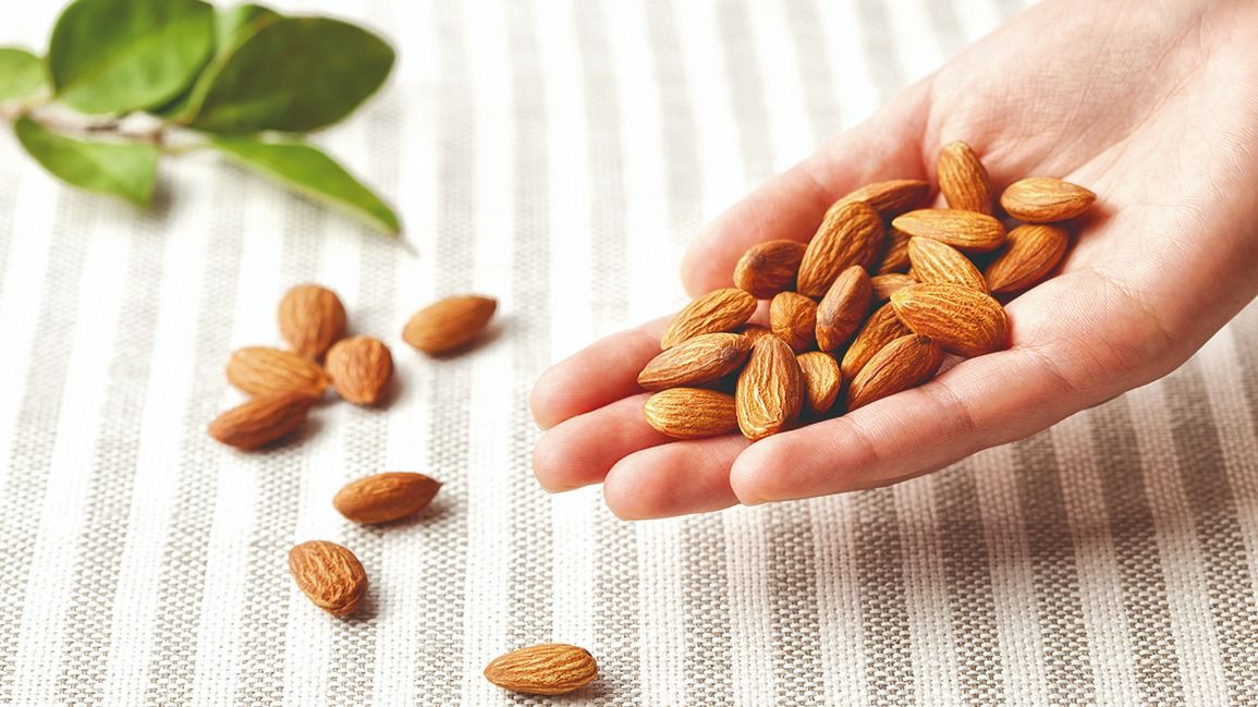 Las almendras satisfacen tu hambre y son ricas en proteínas, un puño de 10 almendras contiene alrededor de 100 calorías.