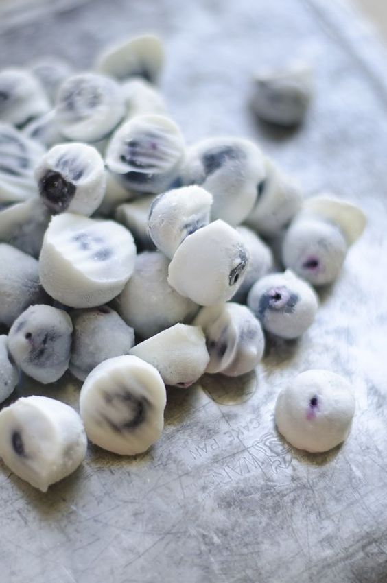 Arándanos con yogurt congelados, para prepararlos sólo debes sumergir los arándanos en yogurt, separarlos y ponerlos a congelar, cuando estén listos puedes consumirlos como si fueran dulces.