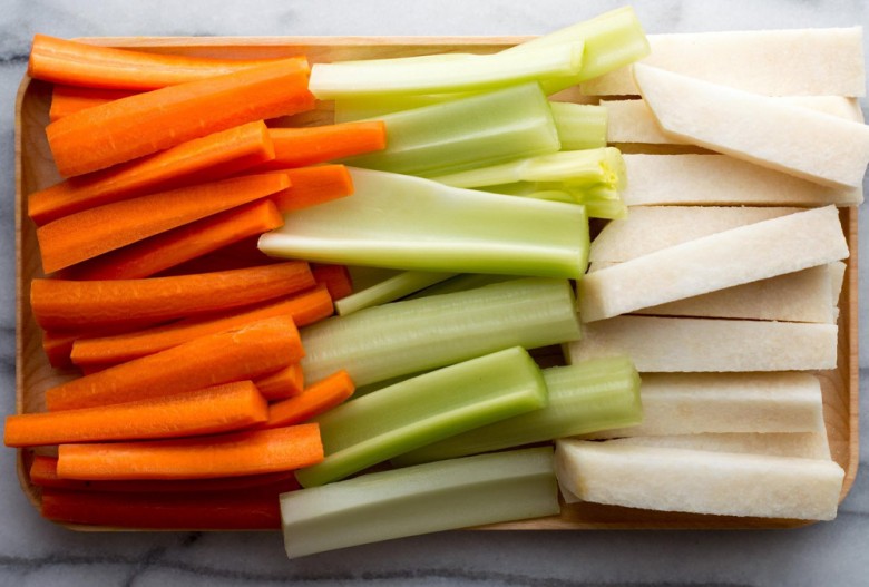 Una taza de palitos de pepino y zanahoria contiene menos de 50 calorías y es rica en vitaminas.