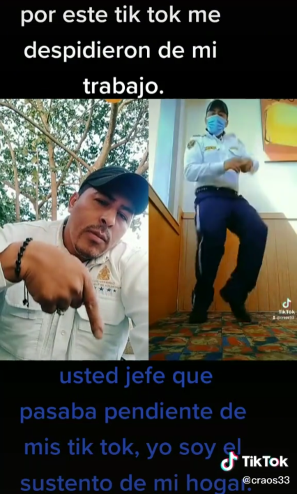 “Por este TikTok me corrieron de mi trabajo. Usted jefe pasaba pendiente de mis TikTok. Yo soy el sustento de mi hogar”, escribió el hombre.