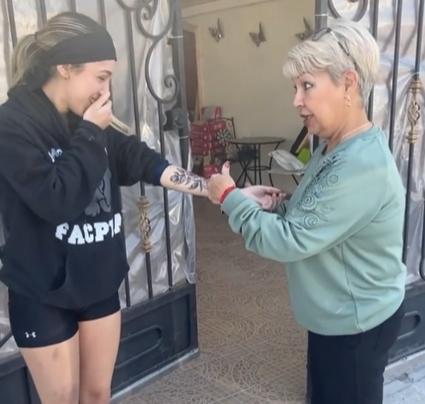 La usuaria de TikTok identificada como Debanhi Aguirre Garza, decidió jugarle una travesura a su madre, y se hizo un tatuaje falso de gran tamaño en uno de sus brazos, lo que ocasionó la molestia de la mujer e incluso le dijo que había perdido el prestigio.