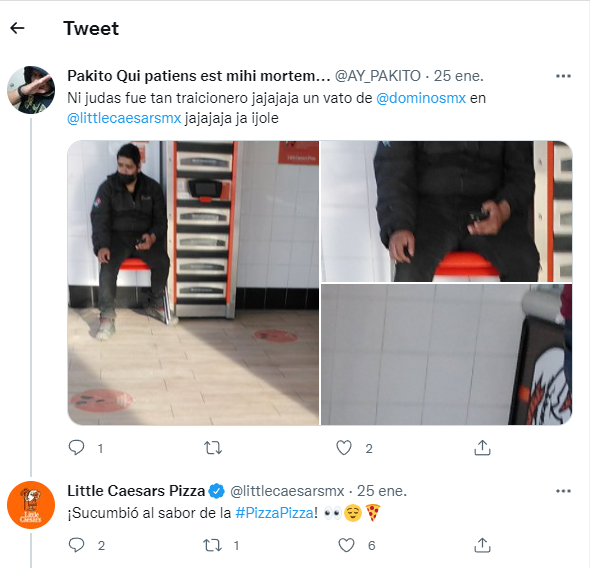 "Ni judas fue tan traicionero jajajaja un vato de @dominosmx en @littlecaesarsmx jajajaja ja ijole", escribió en el tweet.