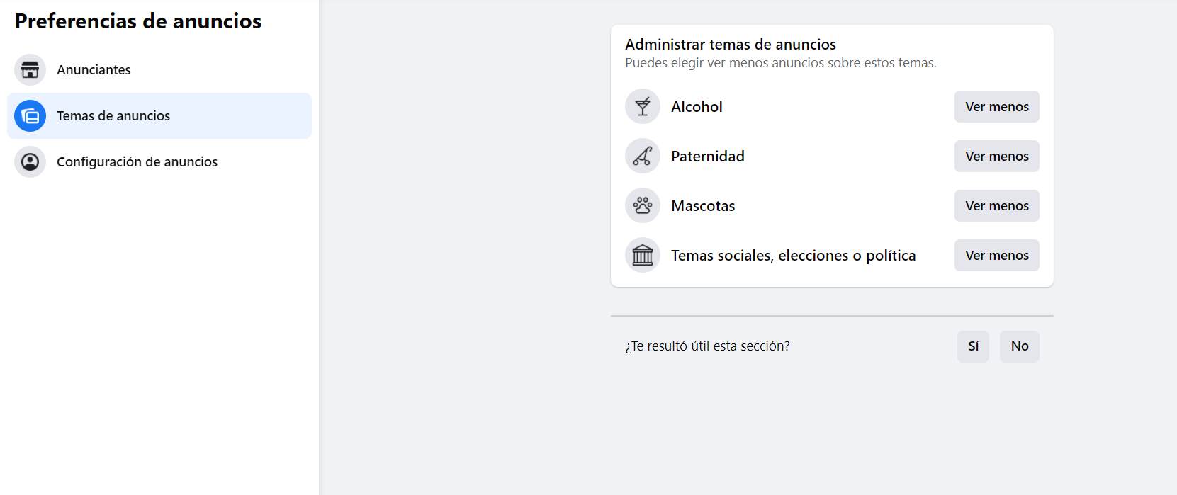 La herramienta de control también te permite la opción de ver menos anuncios de alcohol, paternidad o mascotas.