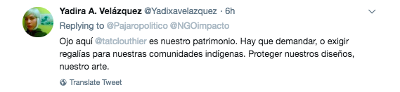 “Se trata de un plagio y una muestra de que a estas marcas no les llega el mensaje de que tienen que ser respetuosos con las comunidades”, afrimó Adriana Aguerrebere, directora de la